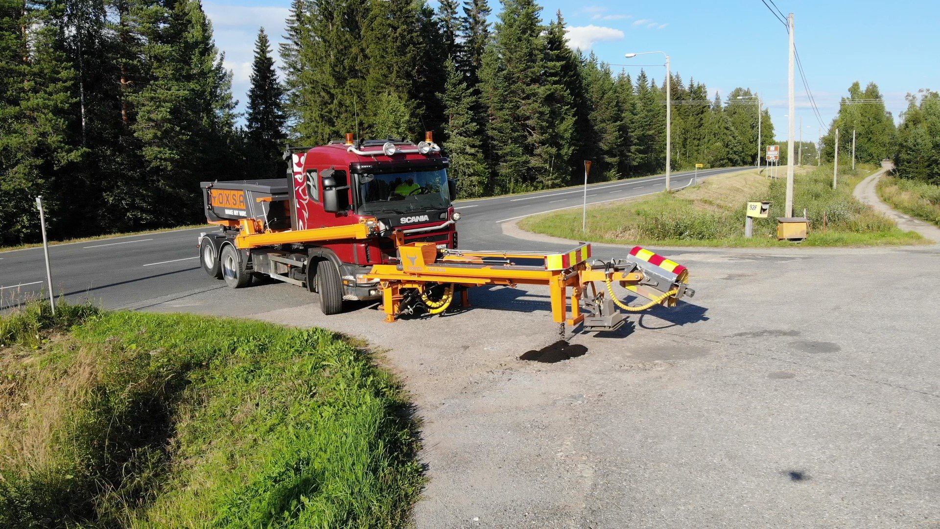 OXSA ARM is attached to truck’s plough stand. Cold mix asphalt container is attached to the truck’s hooklift. You can repair potholes using any truck with a plough stand and a hooklift. Depending on the worksite, crash attenuator is allowed to be attached on the back of the truck in which case you don’t need an additional crash attenuator.